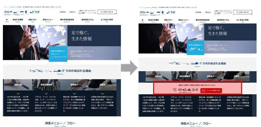 さらに問い合わせにつながるようなトップページの構成へと改修を行うことで、直帰率の改善へ繋いだ事例です。